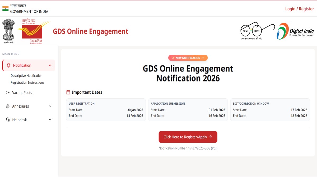 GDS New Website Apply Now 2026 इंडिया पोस्ट ऑफिस GDS के लिए इस लिंक से करें आवेदन